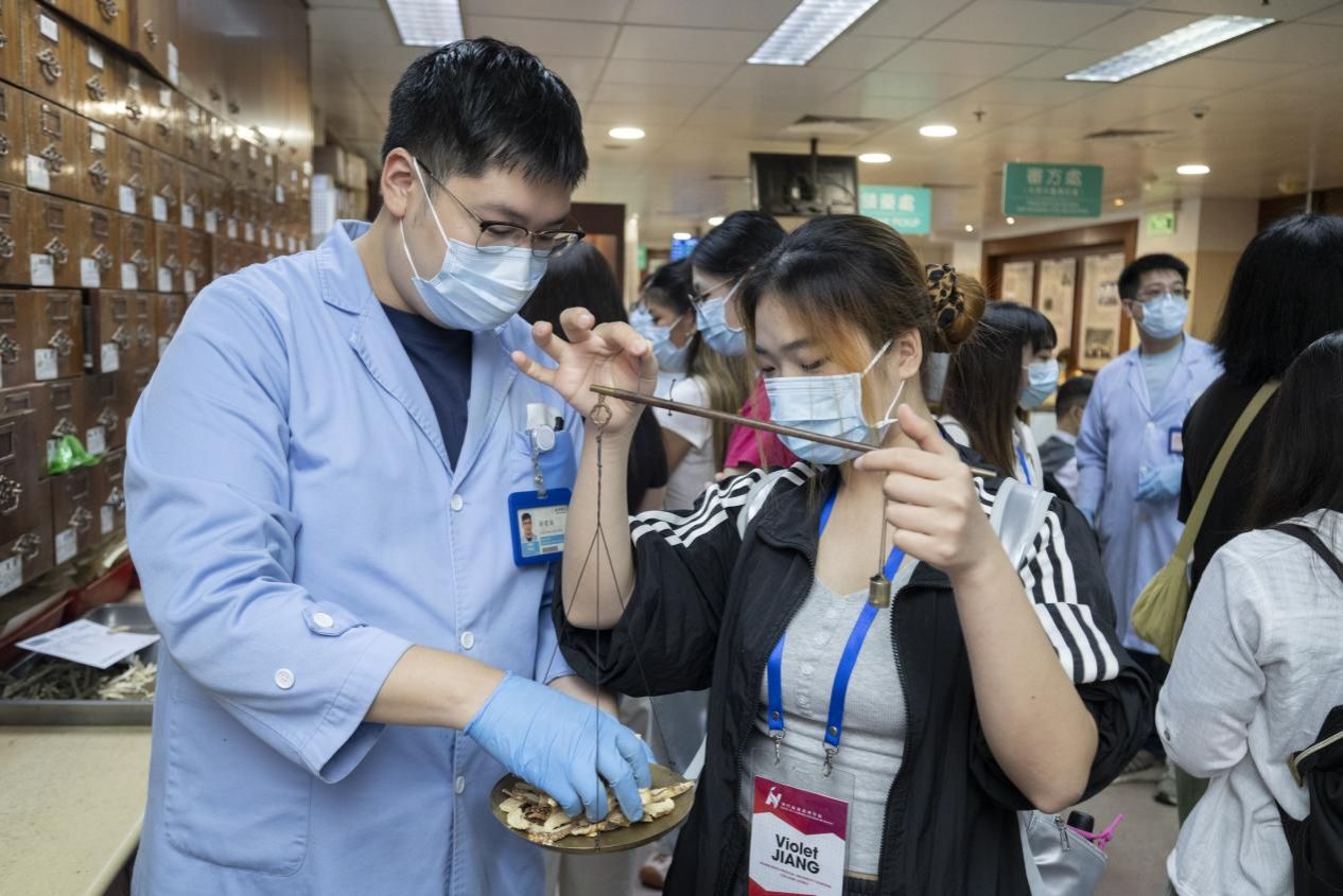 随后走访的历史慈善机构同善堂,静静承载着中医药的独特记忆。那座拥有80多年历史的老中药柜,作为政府唯一特批可不贴药物标签的文物,斑驳的木纹里藏着岁月的故事,让学子们对中医药文化的传承有了更具体的体悟:传统并非一成不变,而是在保护中延续生命力。