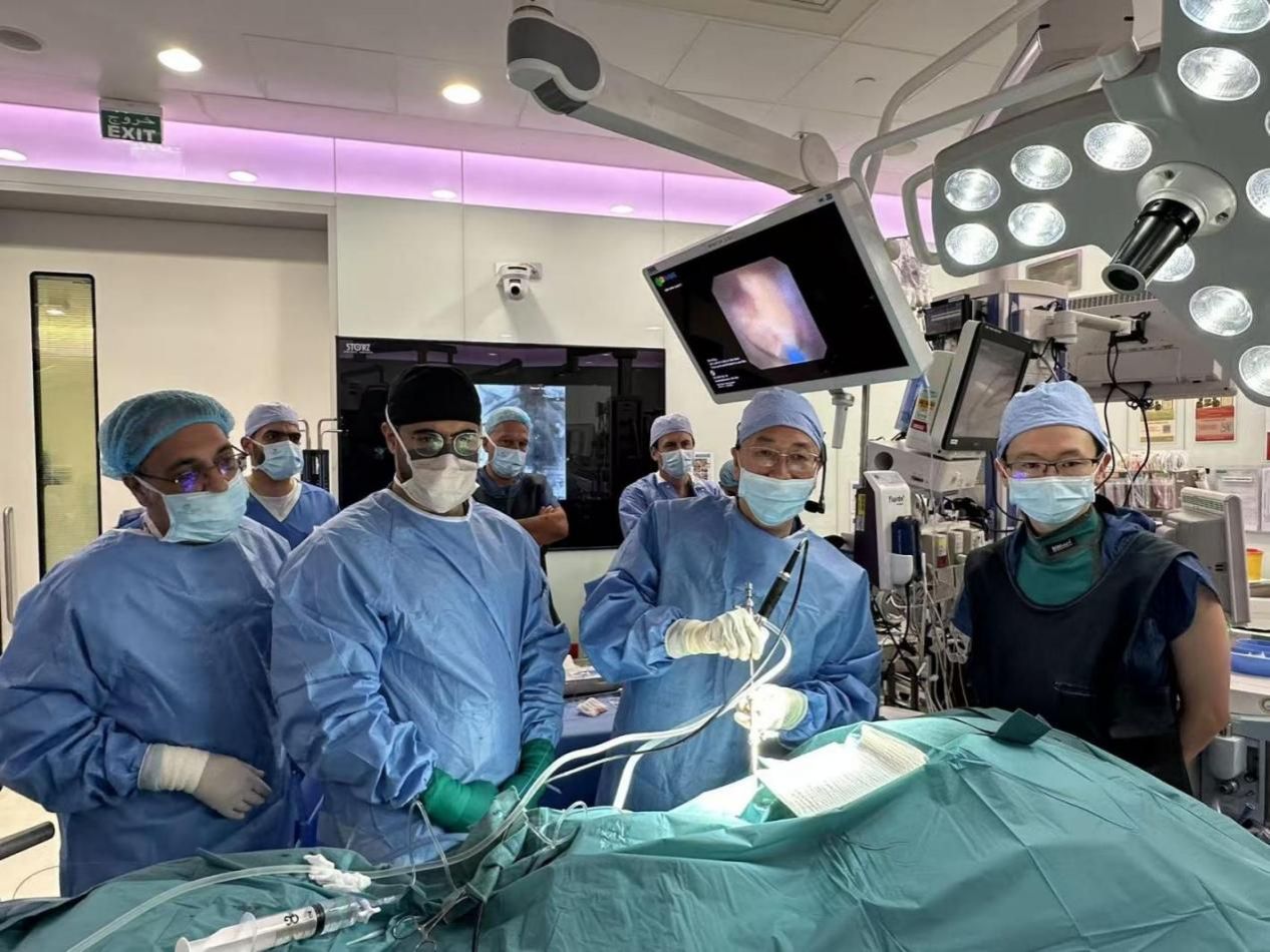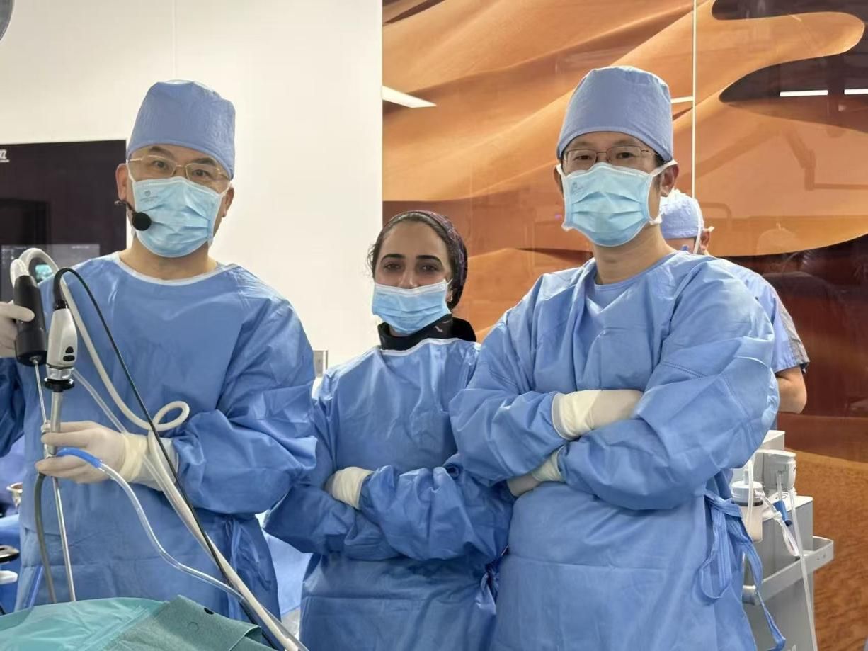 本届年会手术直播演示环节,成为大会最受瞩目的学术亮点之一。来自中国及多国的顶级泌尿外科专家联合完成了14台现场手术,全面呈现了泌尿结石微创治疗的最新理念与技术创新。其中,国际尿石症联盟(IAU)创始人之一、共同主席兼秘书长曾国华教授予10月4日在卡塔尔哈马德综合医院外科特殊医疗中心(Hamad General Hospital Surgical Specialty Center)主刀完成了三台教学手术,全部采用了中国自主创新、已在全球推广的原创技术体系。包括: 负压吸引微通道经皮肾镜取石术(Suction-mini-PCNL,SMP)及智能控压输尿管软镜碎石。这些手术均基于我国自主研发的核心设备,标志着中国微创泌尿外科装备体系已成为国际临床主流标准之一,充分体现了“华夏智造”的创新力量。此外,国际尿石症联盟副主席、第十三届CUA委员李建兴教授现场演示了在B超定位标准通道经皮肾镜取石术,以精准安全的通道建立、稳定高效的取石效率赢得了与会专家的热烈掌声。该术式以其简洁、安全、可复制的特点,为复杂泌尿系结石的处理提供了可推广的“中国经验”。来自多国的参会专家纷纷表示,中国专家的手术演示不仅代表了当前全球泌尿结石微创治疗的最高水平,更彰显了中国原创技术体系在国际舞台上的系统性、领先性与示范性。