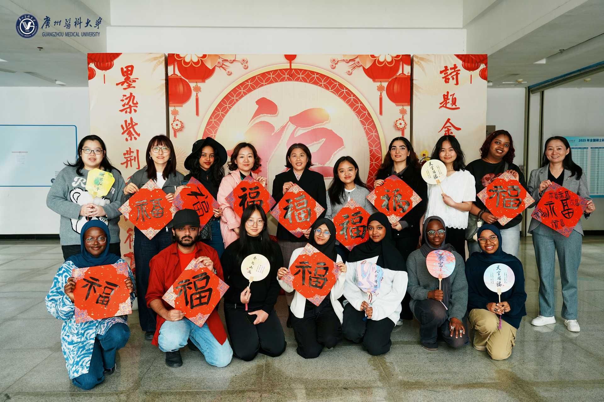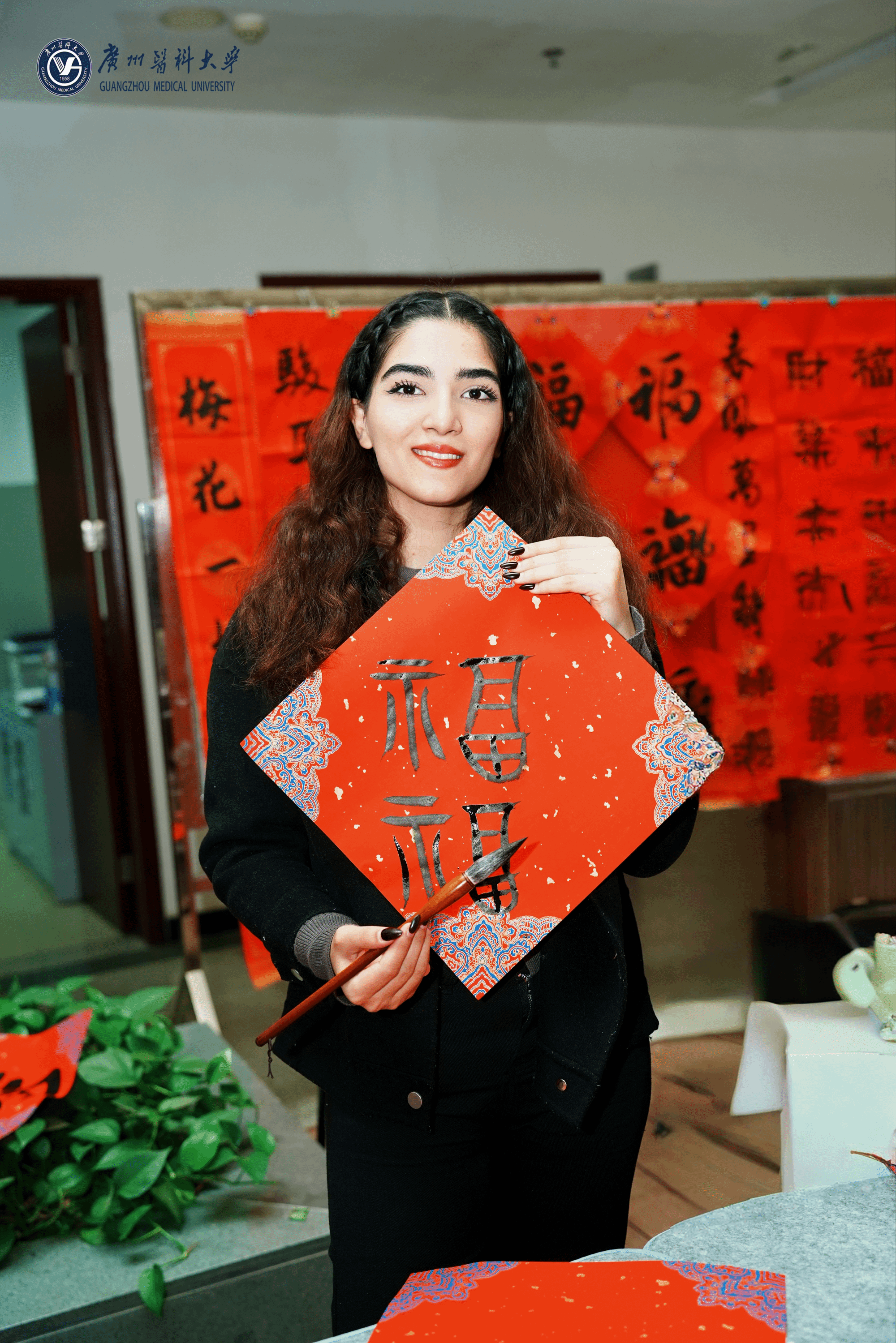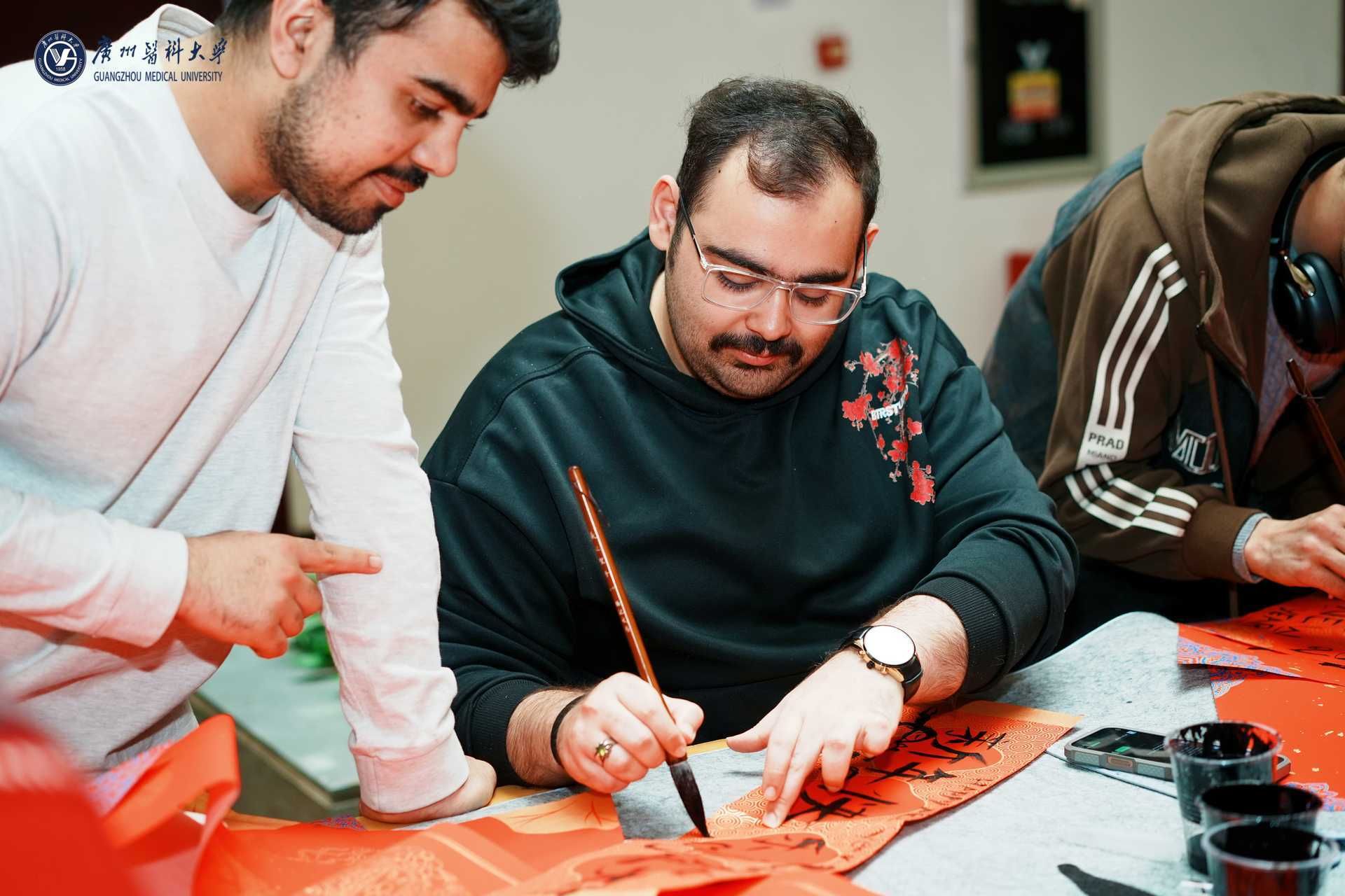 学校还组织了迎新春送春联暨非遗体验活动。留学生在老师的指导下写“福”字、做漆扇,亲身感受书法与非遗技艺的魅力,进一步加深了对春节习俗与传统文化的理解。