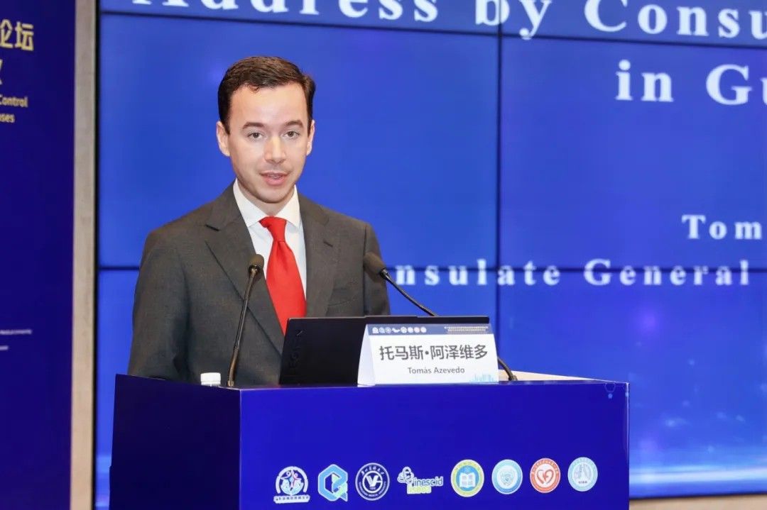葡萄牙驻广州总领事馆总领事托马斯·阿泽维多先生在致辞中表示祝贺本次论坛成功举办,并充分肯定了中葡在医学与科研领域的合作成果。他指出,人工智能正深刻推动医疗健康变革,双方在公共卫生与传染病防控方面合作前景广阔,并表示将持续支持中葡人文与学术交流与协作。
