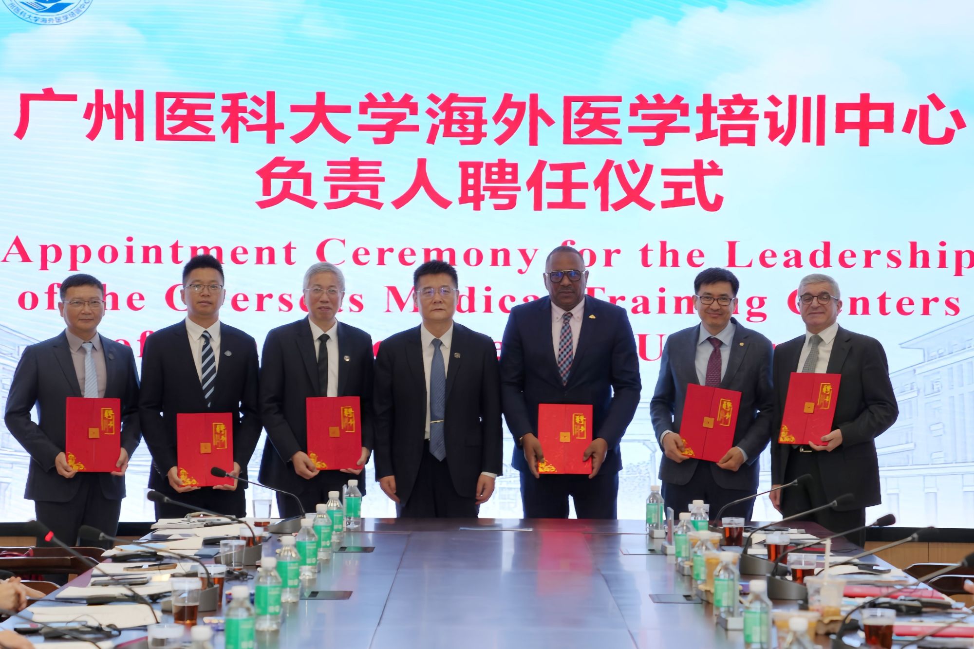 哈萨克斯坦阿斯塔纳医科大学校长Turmukhambetova Anar受聘为广医名誉教授,哈萨克斯坦阿斯塔纳医科大学男科学与泌尿外科系主任Ulanbek Zhanbyrbekuly、土耳其桑贾克泰佩科研与培训医院泌尿外科主任Kemal Sarica、俄罗斯圣彼得堡大学附属医院泌尿外科主任Nariman Gadzhiev受聘为广医客座教授。广医一院副院长曾国华受聘为哈萨克斯坦中心和土耳其中心主任,Ulanbek 教授、广医一院洪城教授受聘为哈萨克斯坦中心副主任,Kemal教授受聘为土耳其中心副主任,第7批援多米尼克中国医疗队队长、广医三院邓楠受聘为多米尼克中心执行副主任,多米尼克医院管理委员会行政总裁Kenneth受聘为多米尼克中心顾问。