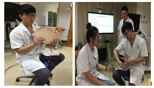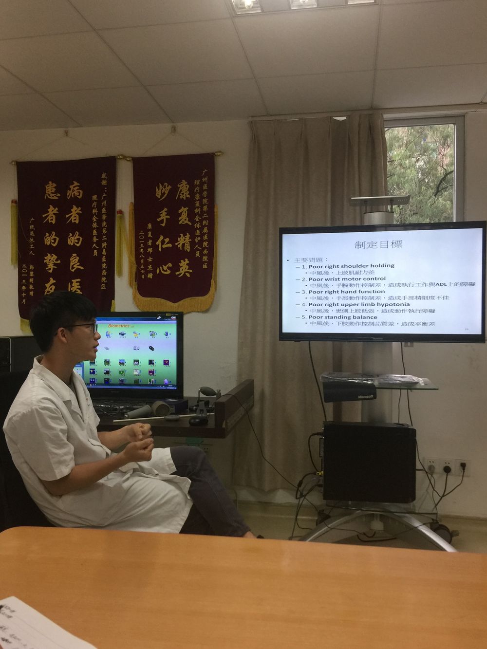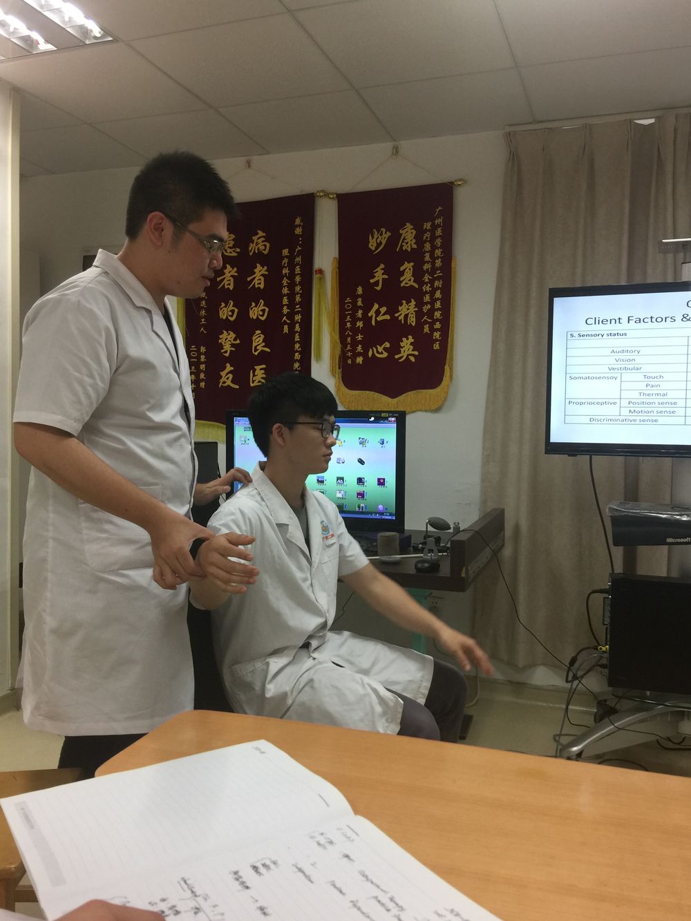 康复科陈艳主任、叶正茂治疗师负责安排两位同学见习,台湾中山医学大学的两位同学,分别到广州医科大学附属第二医院西院区的康复科和天河区中医院进行见习和交流,了解广州市社区医院的职业治疗基本情况,熟悉紧密型医联体模式下社区职业治疗的开展模式等。期间,台湾的两位同学也积极与我校的学生进行交流学习,一起上课和做病例分析并做报告。