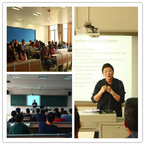 2016年4月25日,我校邀请香港大学Prof.Sookja K.chung为我校师生授课,授课内容为Respiratory system(Histology), 2015级留学生及基础学院教师约40人到场听课。