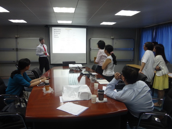 附二院还邀请Professor Rainer在新门诊15楼会议中心为急诊科、中心ICU医护人员及研究生们进行授课,授课内容包括了介绍英国卡迪夫大学的学科结构、科研特色,与急诊科两地合作科研项目的进展以及无创血流动力学在休克方面的研究。9月3日上午,Professor Rainer还与急诊科医护人员进行学术研讨会,对急诊科的科研项目进行详尽的指导,并对今后的科研方向提出了宝贵的建议。