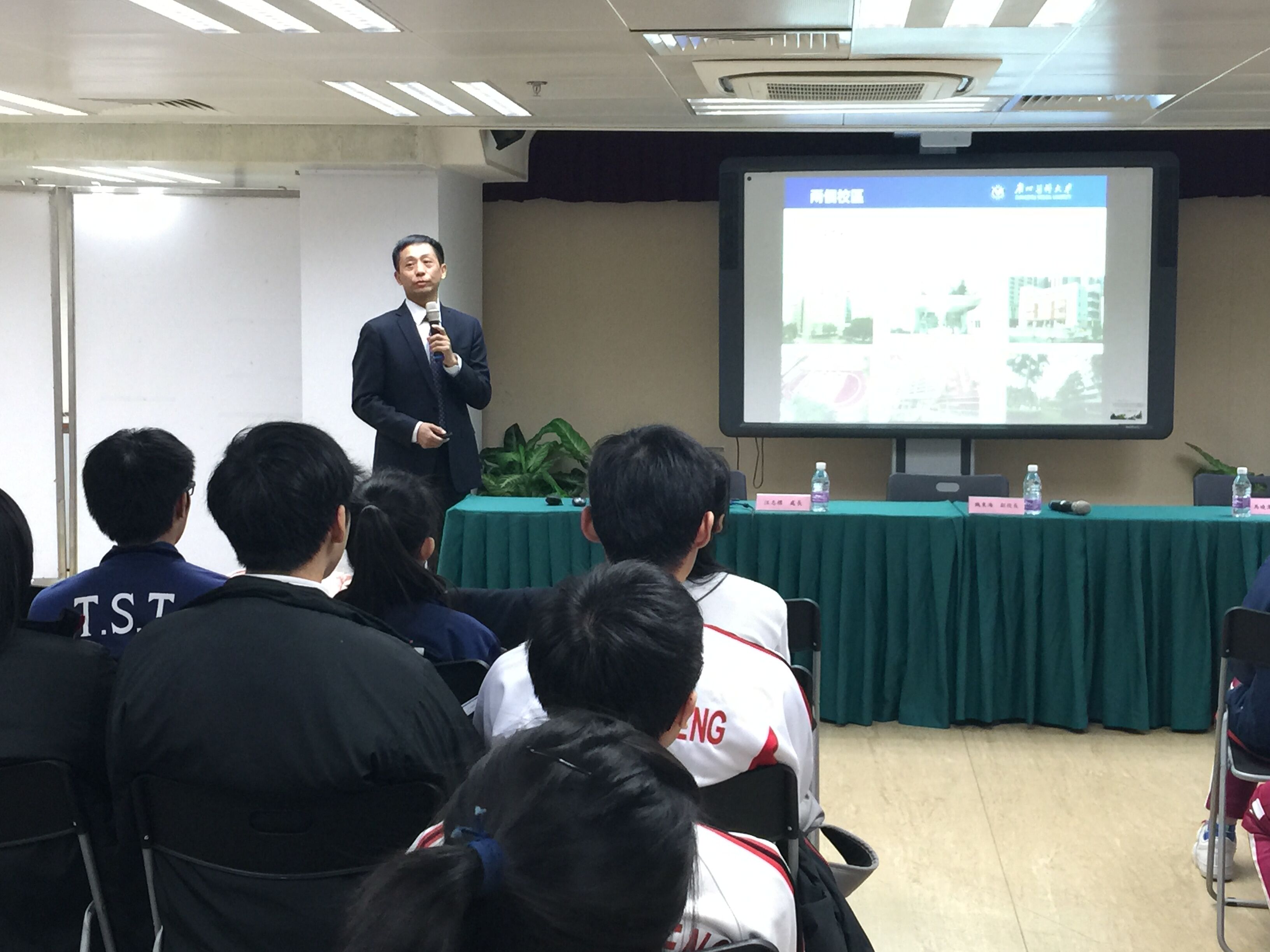 我校代表团在澳门先后举办了三场大型招生宣讲会,来自澳门濠江中学、同善堂中学、镜平学校(中学部)、劳工子弟学校(中学部)、广大中学等中学约共200名师生参加宣讲会。此外,我校一行走进澳门教业中学、培正中学,分别与教业中学贺城校长、培正中学陈敬濂副校长座谈招生工作的合作,并面对高二、高三学生开展保送生招生宣讲会。澳门中华教育会理事、同善堂中学校长欧宇雄先生会见我校代表团,对我校近年来取得的跨越式发展表示赞赏,并表示将极力支持我校在澳门地区的招生工作。