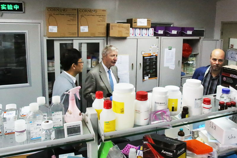 12月8日,2011年诺贝尔生理奖获得者、中法霍夫曼免疫研究所荣誉所长朱尔斯•霍夫曼教授(Jules A Hoffmann)及其助手,广州医科大学特聘教授多米尼克•费朗东(Dominique Ferrandon)到免疫所指导工作。
