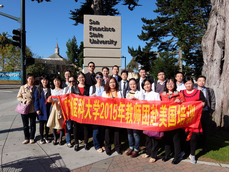7月26日至8月18日,由20人组成的第九批广州医科大学赴美培训教师团在旧金山州立大学就“医学院校全英授课教学方法研究”的主题进行学习。