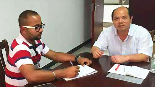 爱尔兰梅努斯大学研究生Soham 与我校导师吕嘉春教授商谈实验计划
