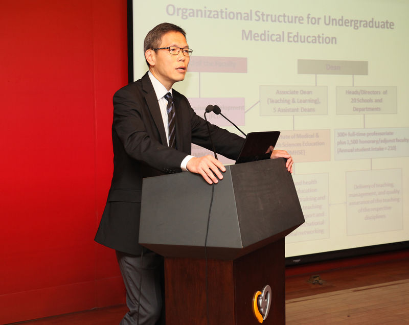 会议由魏东海副校长主持,香港大学李嘉诚医学院梁卓伟院长进行讲话,梁院长介绍了近年来香港大学李嘉诚医学院的教学改革,尤其重视与华南地区的高校和机构和合作交流,因此,他们非常重视与我校的合作。梁院长介绍了香港大学李嘉诚医学院的教育有三大特色:一是以学生为本,二是重视医学伦理与医学人文教育,三是侧重跨学科学习(inter-professional pathways)。香港大学李嘉诚医学院刘泽星副院长介绍港大医学院的医学课程和医学教育情况;陈振胜助理院长介绍港大医学院的科研型研究生项目和招生要求等。