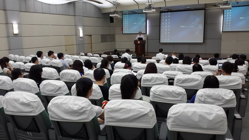 我校王新华校长发表英文讲话,并提出两点要求,一是希望学员们能学以致用,将在国外所学知识运用到教学当中。二要希望教师们Keep practicing(坚持实践)。我校将落实国际化发展的整体战略,继续做好选派优秀教师出国培训工作。