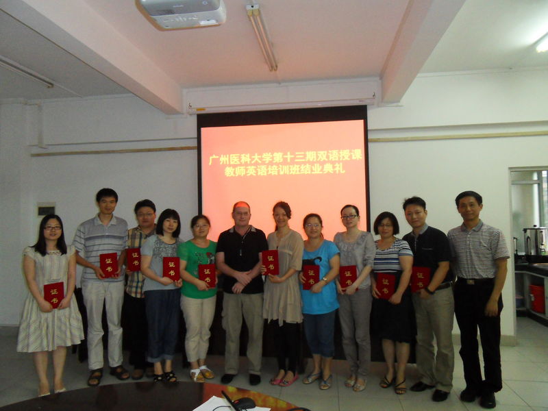 5月15日下午,我校第十三期双语授课教师英语培训班结业典礼在16栋5楼会议室顺利召开。魏东海副校长、第十三期双语授课教师英语培训班的11名学员参加了汇报会。