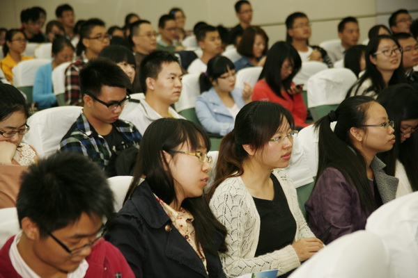 学术报告厅很少有这么满过,学生慕名而来,于是,有人只好席地而坐。
