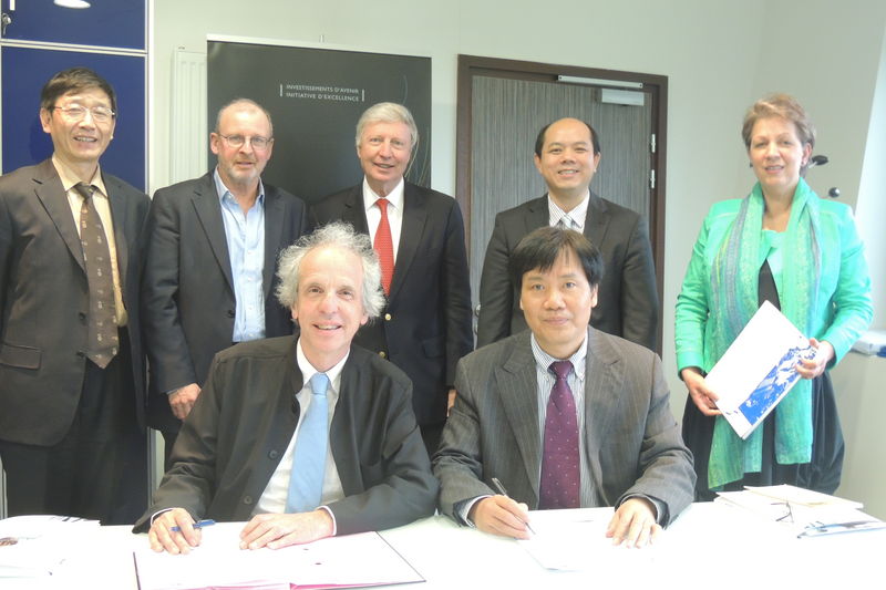 (图为我校王新华校长(右前一)与斯特拉斯堡大学校长Alain Beretz(左前一)签订合作备忘录)