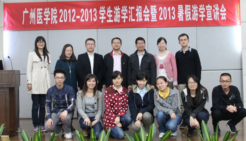2013年4月11日,由我校国际教育学院和学生处联合举办的广州医学院2012-2013游学汇报会暨2013暑期游学宣讲会在学校学术报告厅举行。
