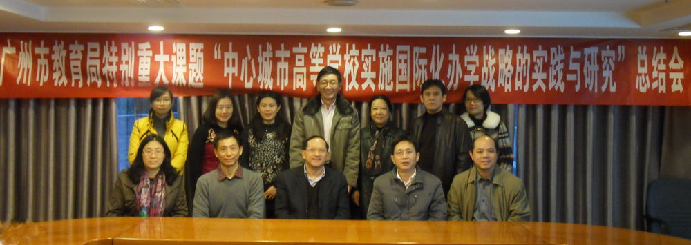 1月12日-13日,广州市教育局召开了特别重大课题“中心城市高等学校实施国际化办学战略的实践与研究”总结会。广东省教育厅副厅长胡振敏、广州市教育局副局长雷忠良、我校王新华校长、广州市教育局高教处邵国良处长、刘林睿副处长等领导出席了总结会。