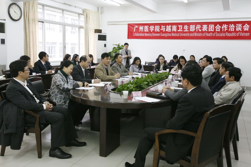 我校魏东海副校长介绍了学校的情况和并与越南代表团进行洽谈。双方商定将在临床医学、护理本科和研究生、学生交换等方面进行合作。代表团中的越南高校代表也表示愿意与我校建立合作关系。