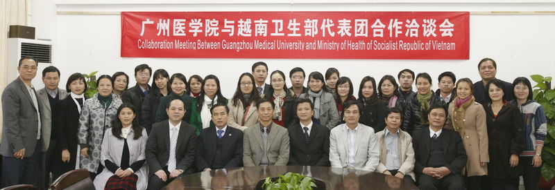 12月4日,越南卫生部和十二所医学院校代表团一行28人访问我校。我校王新华校长、魏东海副校长接待了代表团。王新华校长对越南代表团表示了热烈的欢迎,他表示,广东的医学院校与越南合作已久,有着良好的合作基础,希望在原有的合作基础上,越南能与我校建立良好的合作关系。越南代表团的领队,越南卫生部教育培训局副局长Nguyen Minh Loi对我校医学教育的发展表示赞赏,希望学习我校在临床医学和护理教育方面的经验。