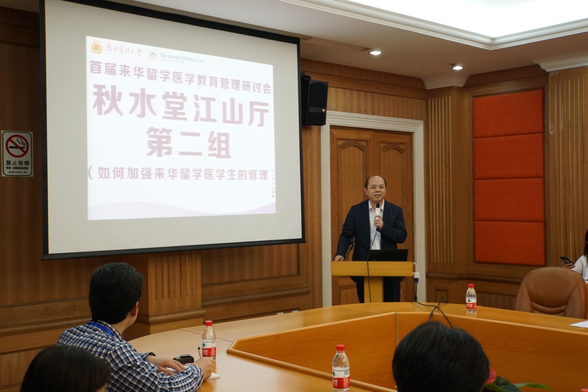 3月29日,首届“高等学校来华留学医学教育管理研讨会”在南方医科大学举行,我校国际教育学院吕嘉春院长带队参加会议并主持分会场报告。此次研讨会以“质量•创新•管理•发展”为主题,与会嘉宾围绕当前来华留学教育面临的核心、难点以及一些前瞻性问题展开讨论交流。